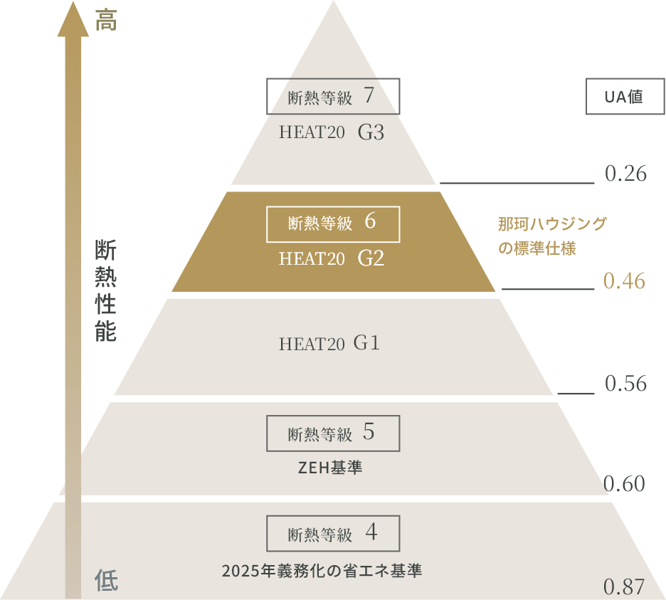 那珂ハウジングの家は、国の基準「断熱等級6」に対応した高断熱仕様です。