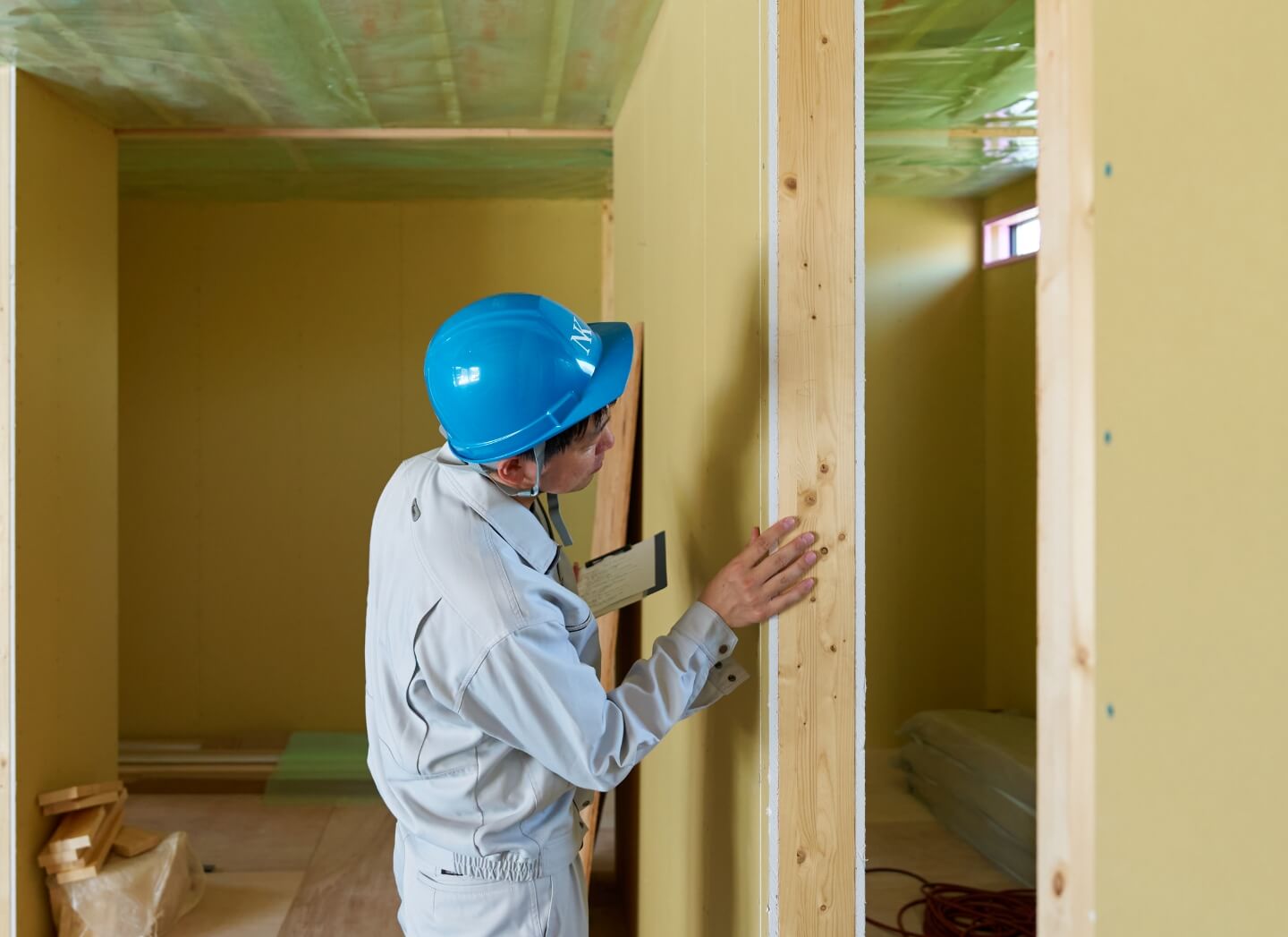 石膏ボードのビスピッチ・建具取付精度・床仕上げ状況など最終段階の品質を確認。