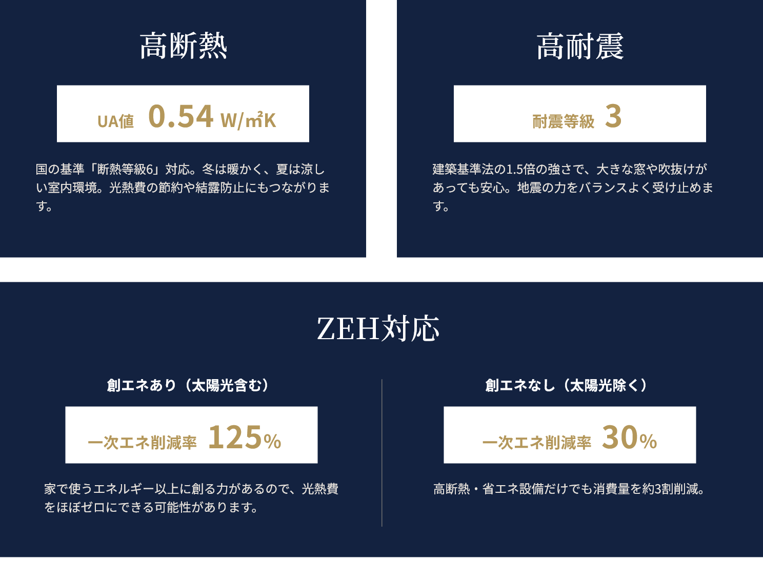 すべての新築住宅でZEH(ネット・ゼロ・エネルギー・ハウス)に対応可能。